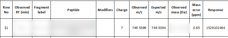下表为通过质谱分析,最终获得的二硫键配对信息表;展示的是二硫键所在肽段的酶切位点、序列、电荷态、分子量等信息。